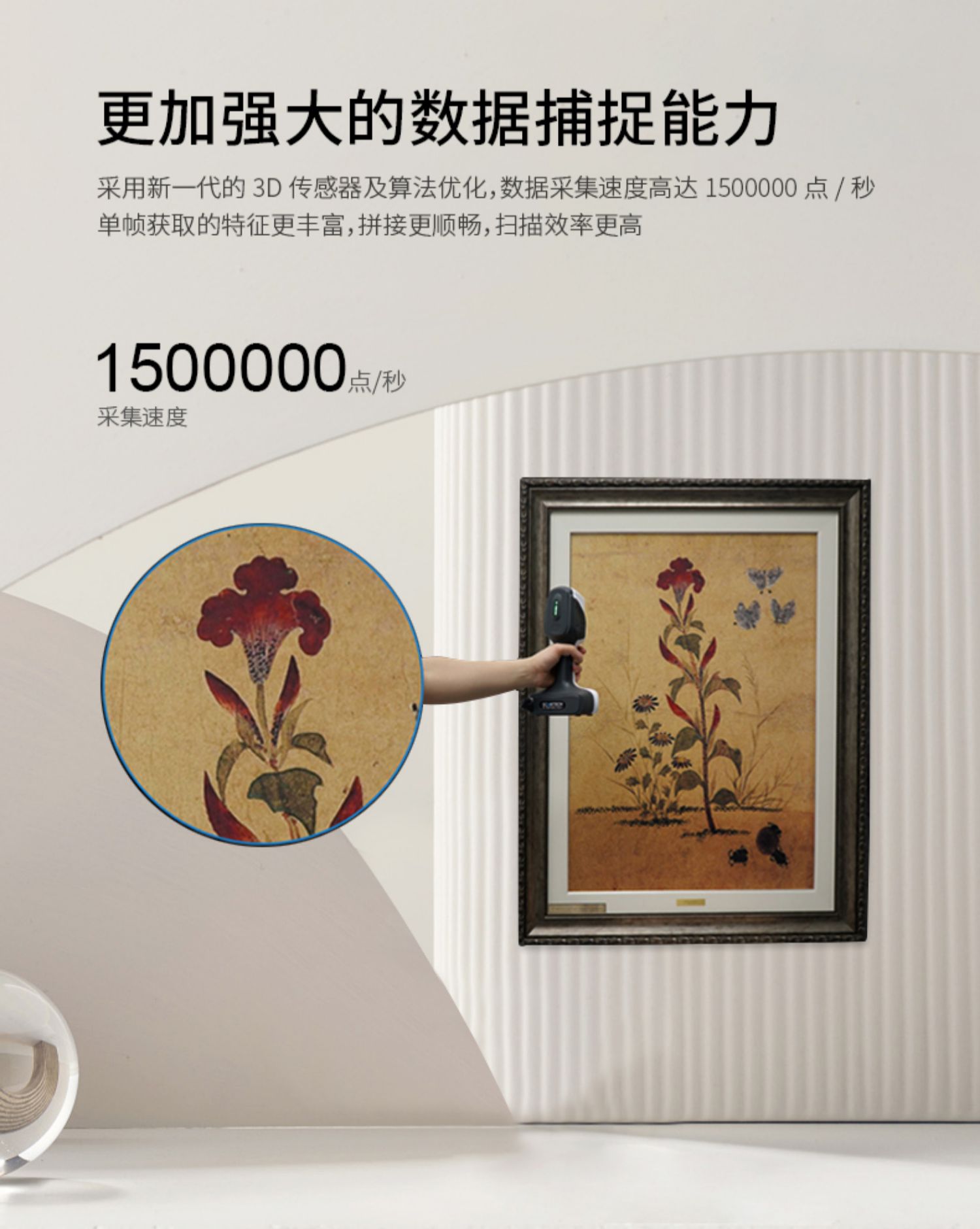 隨時隨地展開3D測量。計量級測量精度,讓每一個細節之處都無所遁形,超高測量速度,