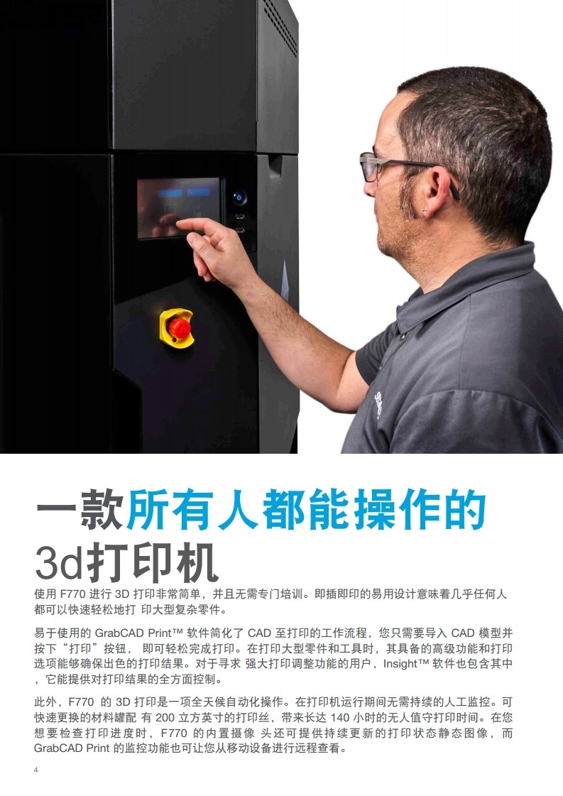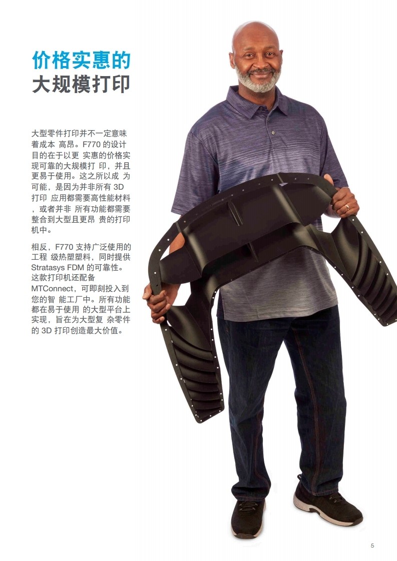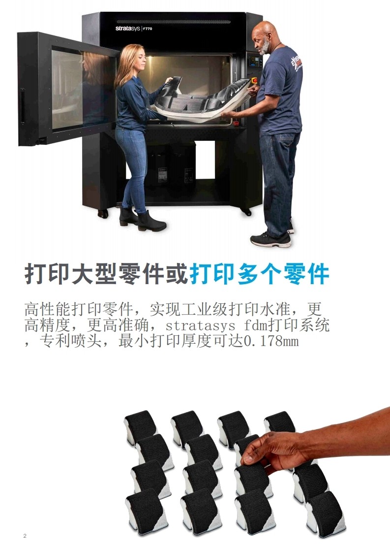 Stratasys F770 ? 3D 打印機使打印大型復雜零件變得更便宜、更可靠并且更簡便。易于使用的大尺寸FDM打技術,工業級規模3d打印機,輕輕松松幫助你省去大量時間,打印精度高達0.002mm,構件尺寸在1000 x 610 x 610 毫米,最大對角線長度 – 1,171 毫米 (46.1 英寸),輕輕松松幫助你實現高性能打印時刻,兼容多種耗材,F770讓創意不在有所限制。F770專門面向尖創行業, 大型零件打印并不一定意味著成本高昂。F770 的設計目的在于以更實惠的價格,實現可靠的大規模打印,并且更易于使用。這之所以成為可能,是因為并非所有3D打印應用都需要高性能材料,或者并非 所有功能都需要 整合到大型且更昂貴的打印機中。 F770 支持廣泛使用的工程級熱塑塑料,同時提供 Stratasys FDM 的可靠性。這款打印機還配備MTConnect,可即刻投入到您的智能工廠中。所有功能都在F770大型3d打印平臺上實現,旨在為大型復雜零件的3D打印創造最大價值。